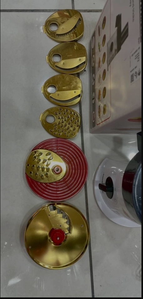 : ۶ عدد (رنده ریز و درشت، برش ورقه ای ، رشته ساز و دیسک خلال کن و اسلایسر)