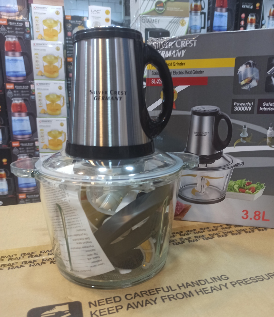 دستهبندی: خردکن و غذاسازقدرت: 3000 واتتعداد کاسه: 2 عددتعداد سرعت: 3 سرعتهتعداد تیغه: 6 تیغ طلایی و 4 تیغ زاپاس طلایی